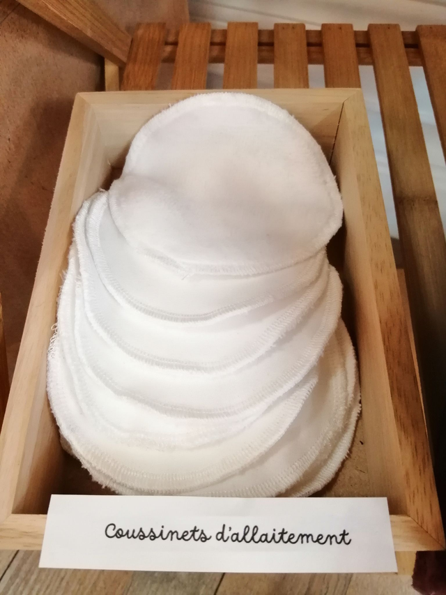 Coussinets d'allaitement lavables, en PUL alimentaire (imperméable et respirant) et éponge bambou.
