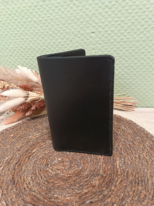 Portefeuille en cui noir entièrement cousu à la main