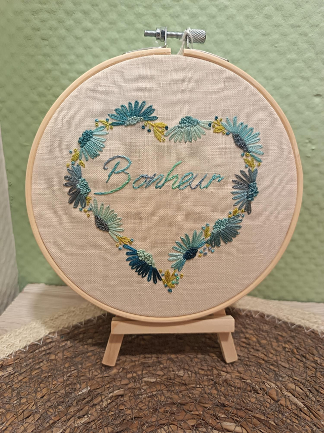 Tambour brodé Bonheur dans coeur