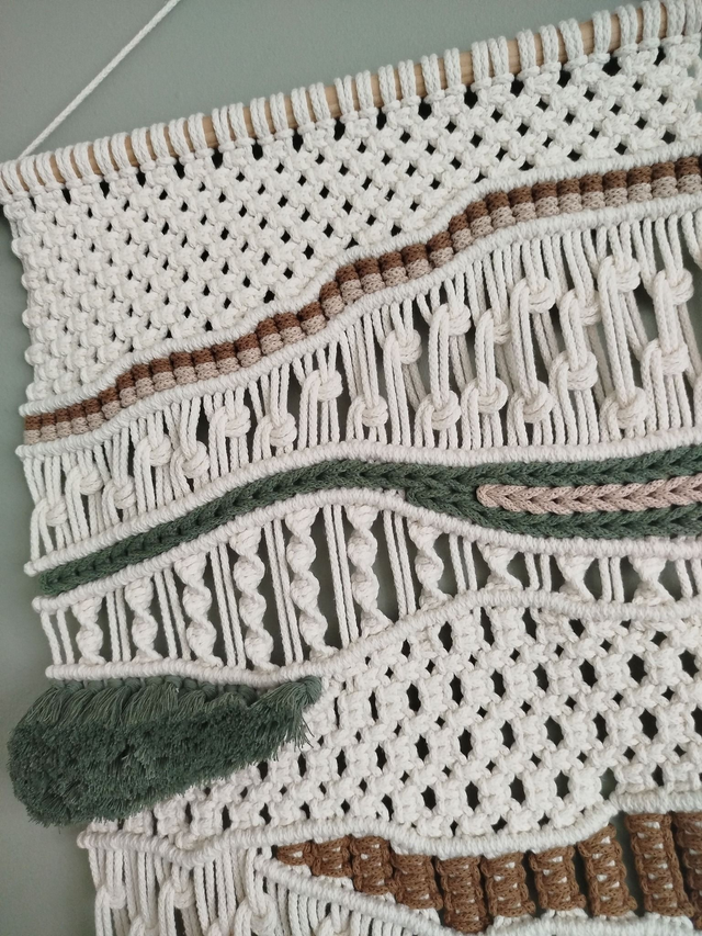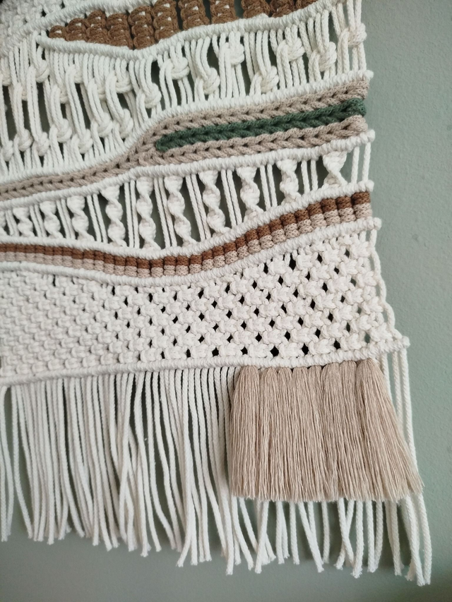 Tissage beige vert marron en macramé